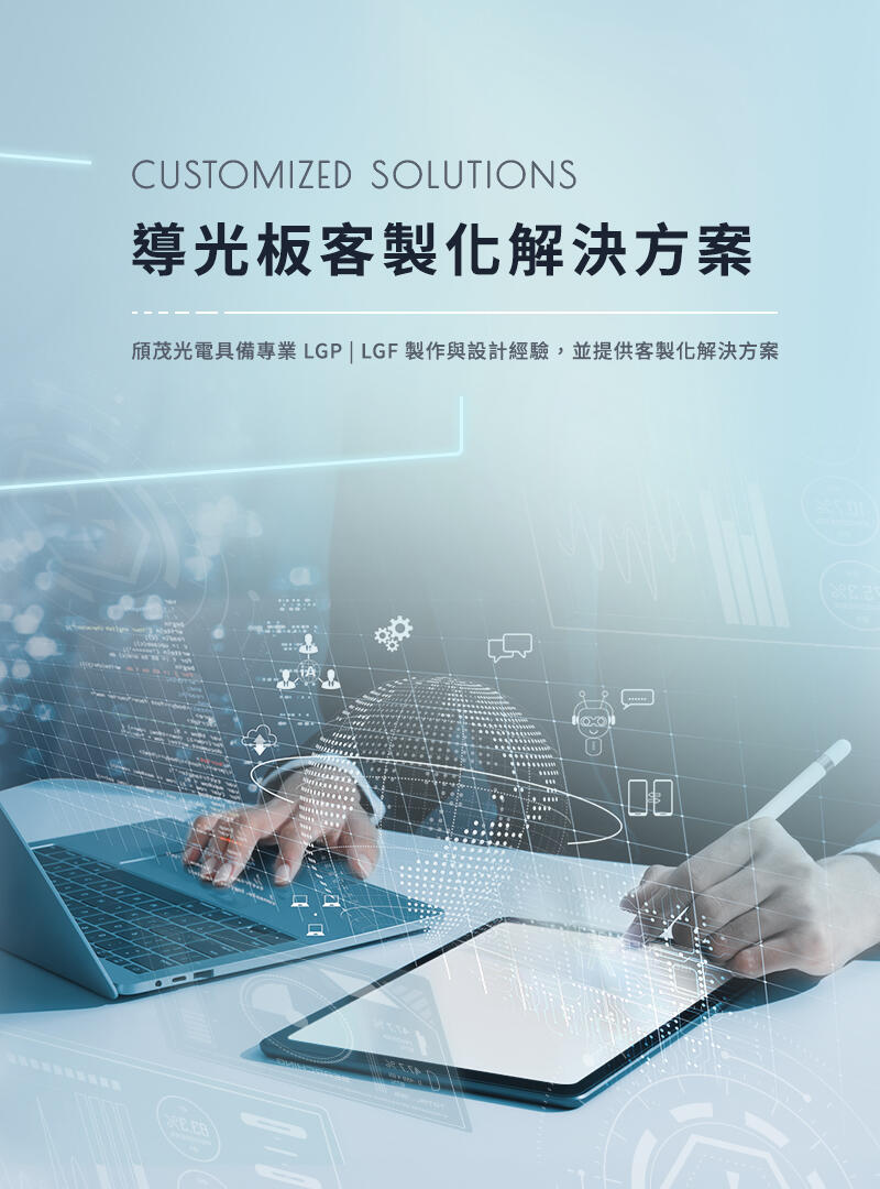頎茂光電股份有限公司專注於技術研發與創新,致力於導光產品之研發、製造、銷售及模具開發,推動光學科技進步。憑藉獨特的熱壓成型技術與精密光學設計,打造高輝度、超薄型解決方案,以滿足高端市場需求。產品廣泛應用於電子書前光板、薄型化導光板、發光鍵盤導光板、觸控手機 LGF(Light Guide Film),以及電子資訊產品的外觀裝飾、功能照明與電競顯示技術,推動智慧顯示與光學應用邁向新境界。